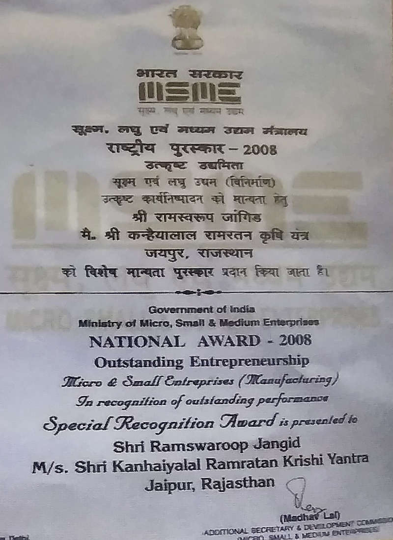 KANHAIYALAL RAMRATAN KRISHI LAGHU UDYOG is our sister concern. We have a vast experience of manufacturing products the gives the best products with sustainable engineering designs, appropriate grades of raw materials and good manufacturing practices.